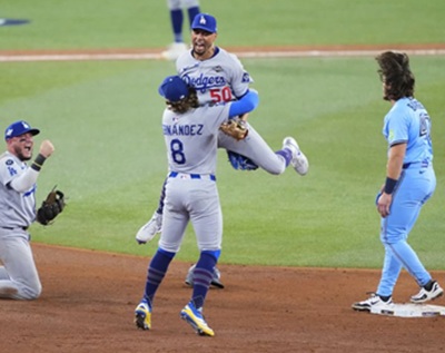 • Mookie Betts’ Double Play (+46.2% cWPA): In the bottom of the 11th, with the winning run at the plate, Alejandro Kirk hit a broken-bat grounder to Betts. The resulting 6-4-3 double play was only the second time a World Series ended on a twin killing, a moment that ranks as the “biggest out” recorded in championship history